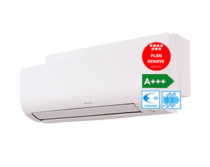 Daikin modelo TXM35A split pared Inverter, con bomba de calor, para estancia hasta 25 m2. Clase energética "A+++" en refrigeración y calefacción. Filtros con Tecnología Flash Streamer AIRE PURO. Nuevo gas refrigerante R32, maxima eficiencia energetica. Incluido control Wifi.